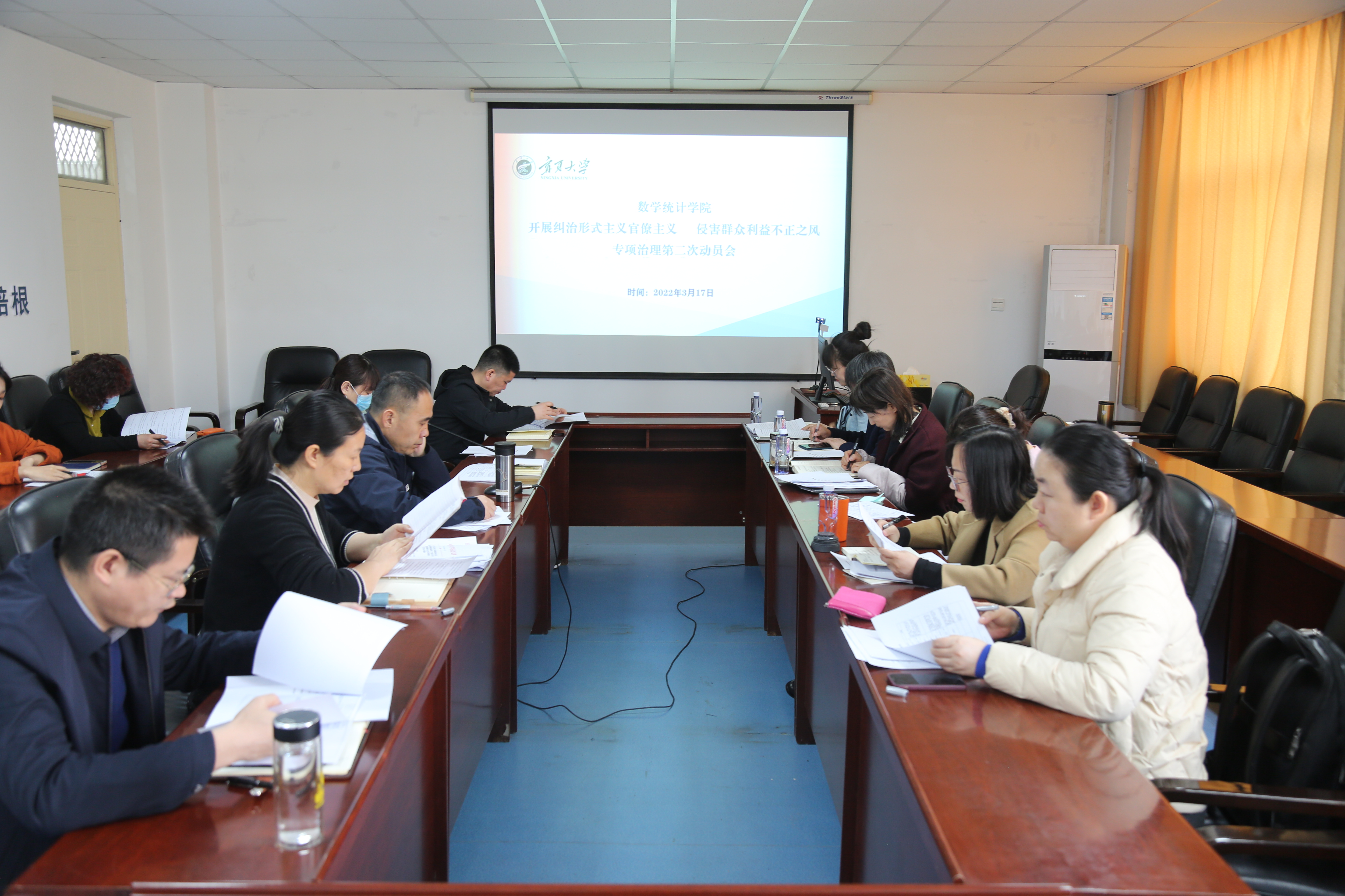 3月17日,学院党委召开二级中心组(扩大)学习会,专题学习“纠治形式主义官僚主义专项整治”与“侵害群众利益不正之风专项治理”有关精神。会议由学校学术副校长、学院院长王青云主持。