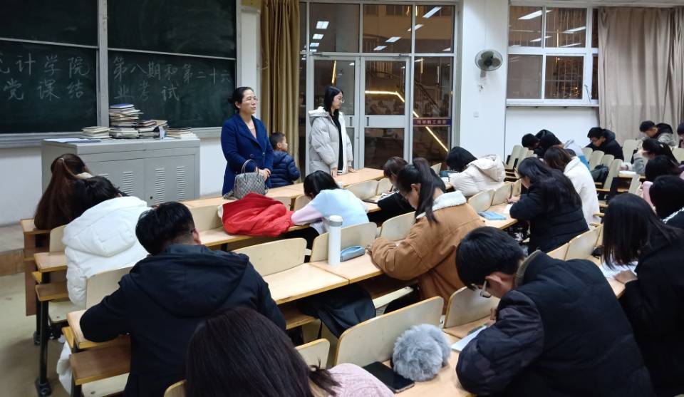 考试前,陶老师强调了本次考试的考场纪律,监考老师们也秉承着考试规范从严监考,使得本次考试严谨有序。考试期间,各位发展对象及入党积极分子认真答卷,未曾出现交头接耳等不良行为。他们在考场中仔细审题,认真作答,认真地对待每一道题目,力求书写一份满意的答卷,而这认真的态度也体现出他们向党组织靠拢的热情,对入党的期待。