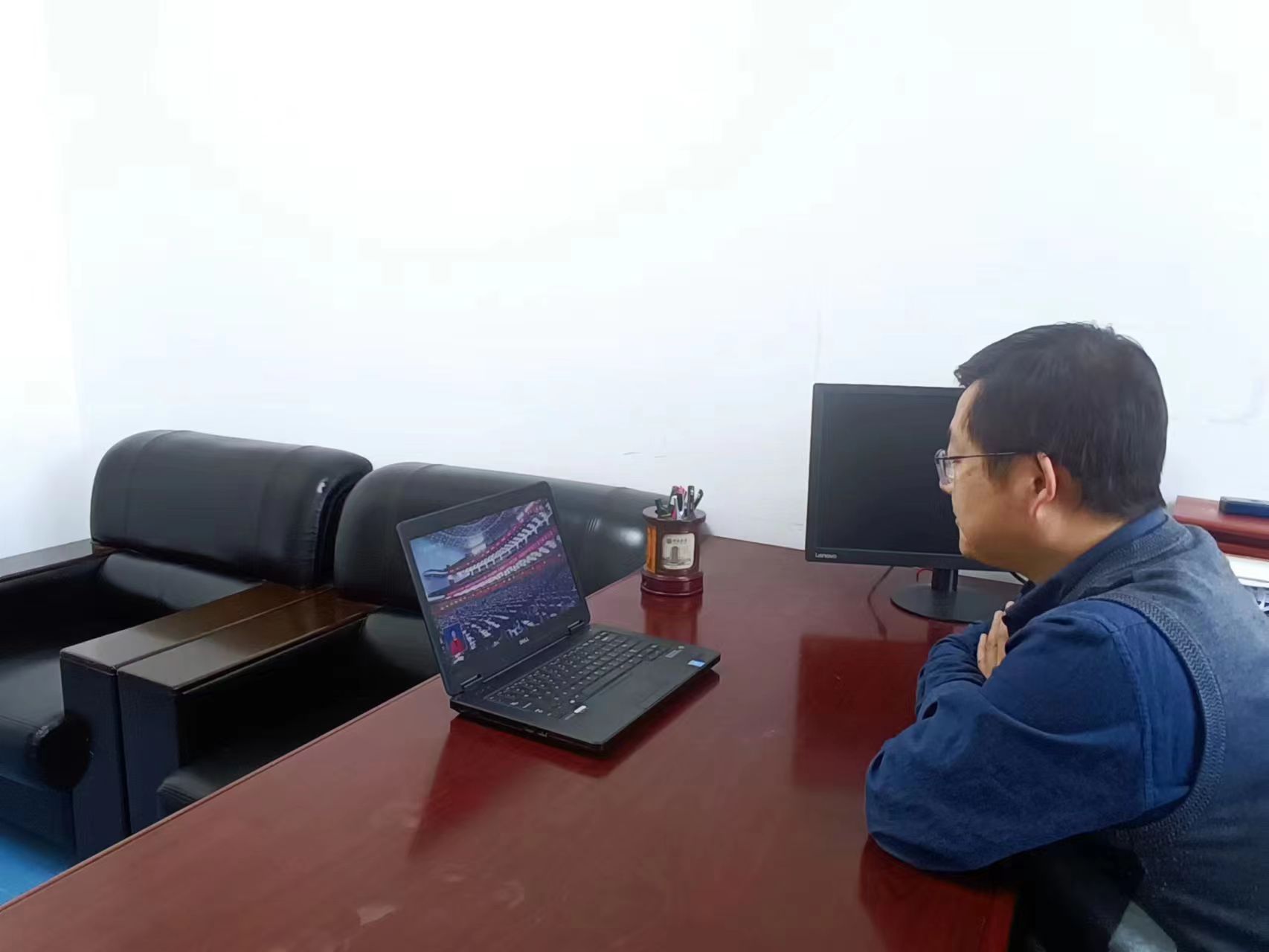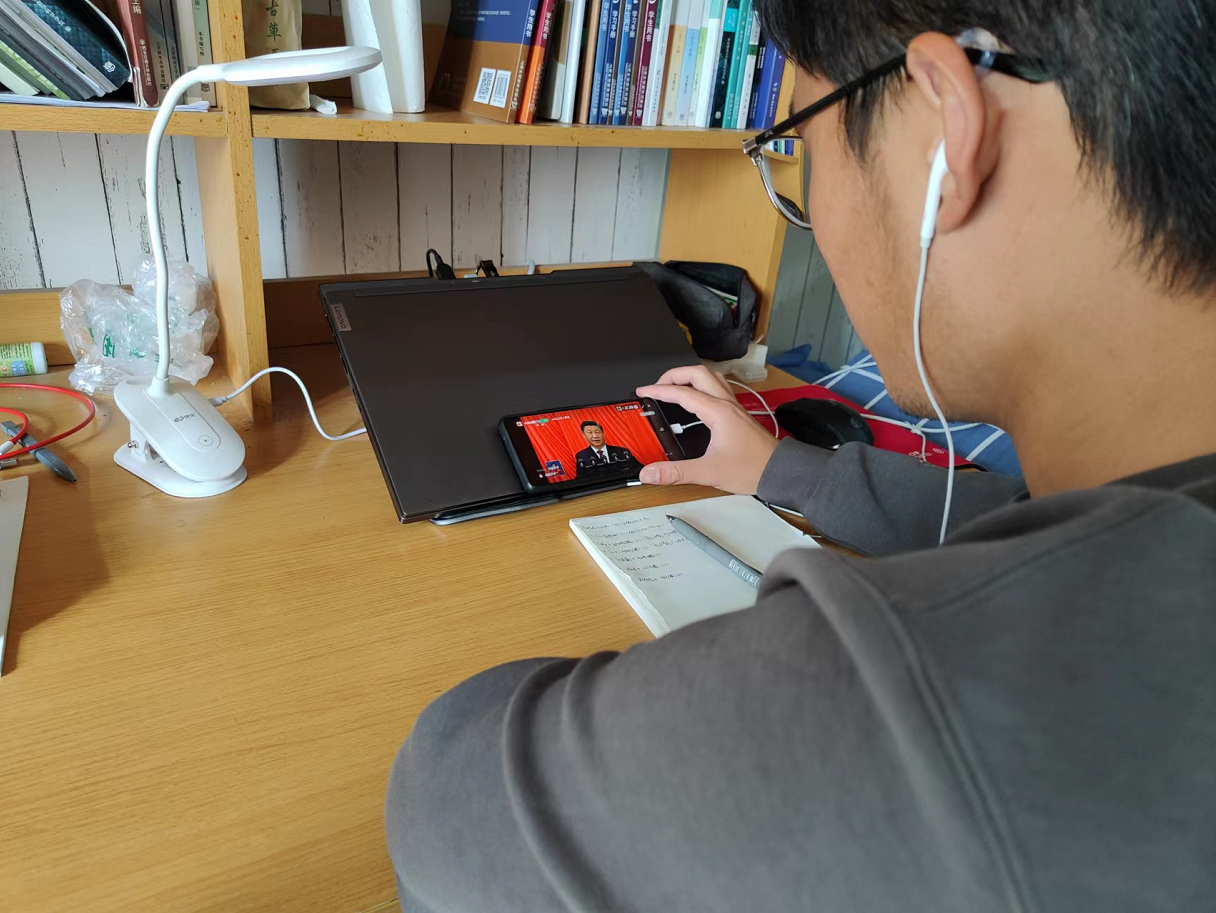 根据学校当前疫情防控形势,学院师生党员分别在办公室、宿舍、家里等地方,通过电视、网络、手机等途径就地收听收看开幕大会盛况。学院第十三届学生组织全体成员通过腾讯会议统一收看盛况。大家畅谈收听收看感想,热议习近平总书记所作的工作报告。