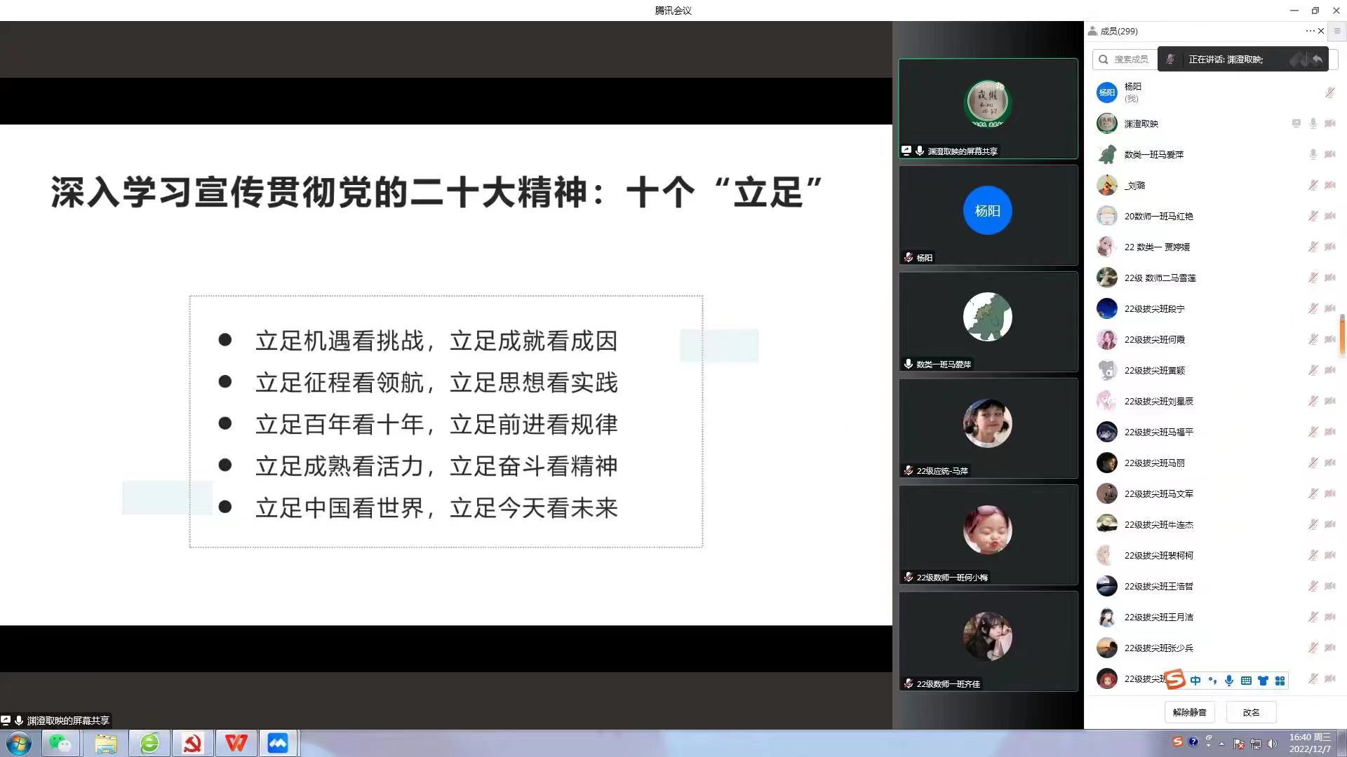 报告中,范映渊围绕二十大报告相关内容,联系我国这些年来走过的极不寻常、极不平凡的历程,联系深化改革开放、推动高质量发展、有效应对重大风险挑战具体实践,联系国际环境深刻变化,深刻领悟党的二十大关于党和国家事业发展大政方针和战略部署的历史逻辑、理论逻辑、实践逻辑。他认为,要深入学习宣传贯彻党的二十大精神必须要清楚两个方面的内容,即:十个“立足”和“新时代是个什么样的时代”,并就这两个方面内容进行详尽阐述。他强调,教育、科技和人才是全面建设社会主义现代化国家的基础性和战略性支撑,我们高校要落实立德树人根本任务,努力推动学校高质量发展。