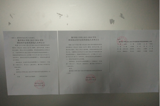 数学统计学院2015-2016学年国家奖学金获奖候选人名单
