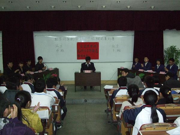 为了丰富全院学生的课余生活,提高同学们的综合素质,开拓视野,增长知识,激发同学们的学习热情,培养和锻炼的团队协作能力和个人创新能力的发展,数学计算机学院学生会分团委组织的班级辩论赛于2010年3月24日在B区主楼报告厅拉开帷幕。