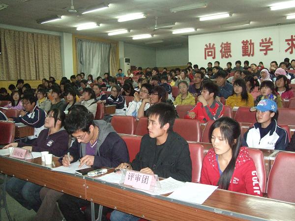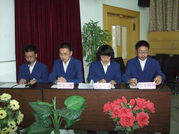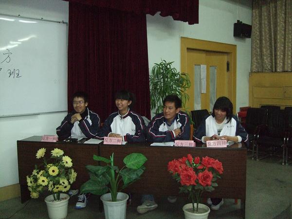 此次初赛有6个班级参赛。三场比赛分别是09级(3)班和09级(4)班之间关于“全民学英语是利大于弊还是弊大于利?”的讨论;09级(6)班和09级(5)班之间关于“大学生学历重要还是能力重要?”的讨论;09级(2)班和09级(7)班之间关于“女大学生毕业后做全职太太是利大于弊还是弊大于利?”的讨论。