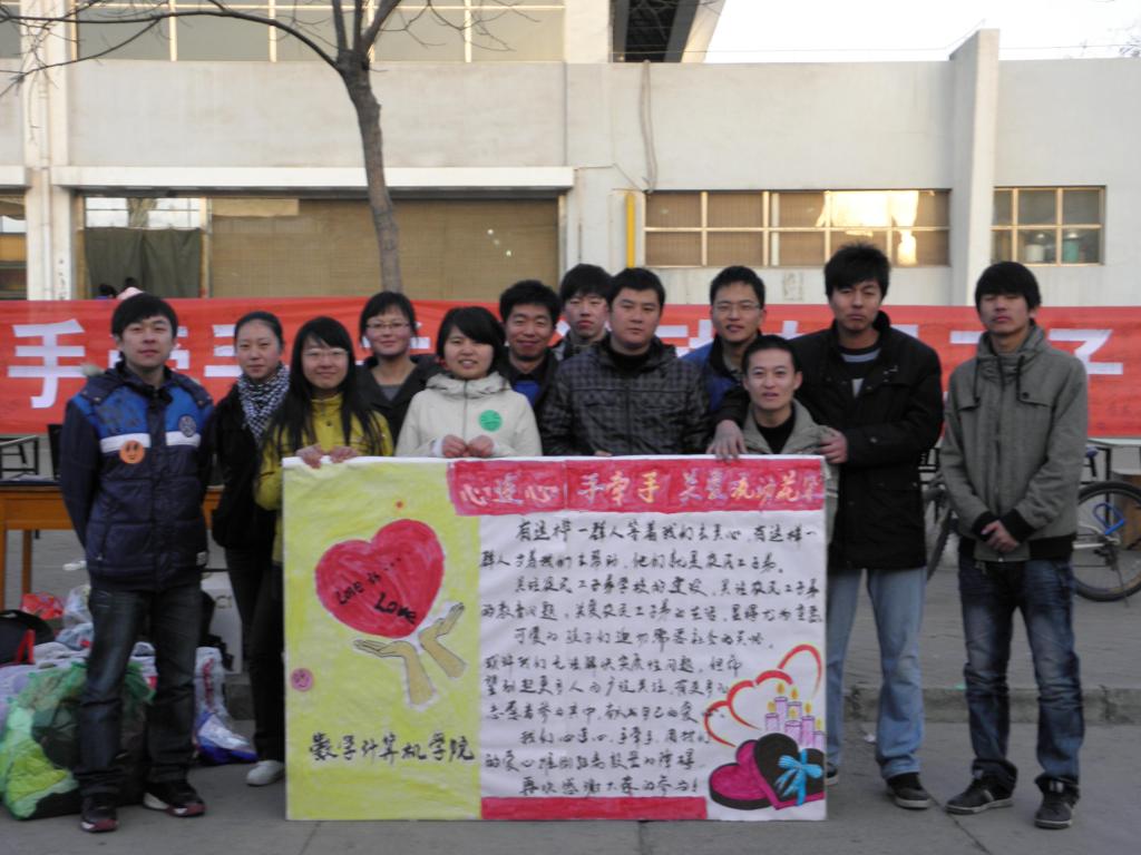 【数学计算学院团委 姜帆】在第12个中国志愿者服务日来临之际,数学计算机学院团委学生会于3月3日下午在北校区第二餐厅门口举行主题为“心连心手牵手关爱流动农民工子弟”的签名和捐赠活动。