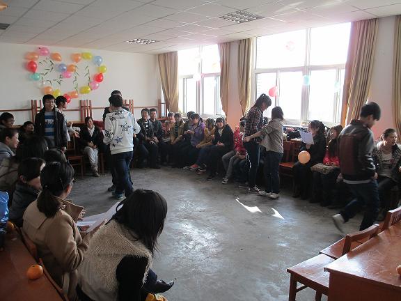 2012年11月17日下午,数学计算机学院2011级数学与应用数学(师范)专业(2)班在B综214举行了以“畅谈大学生活,你我共分享”为主题的班级联谊活动。学院2011级年级主任张振霞老师,班级兼职班主任丁生虎老师,英语课老师季春燕,解析几何任课教师胡有婧参加本次活动。