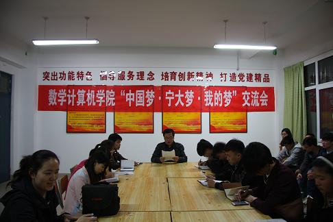 【数学计算机学院 刘博】4月2日晚,英国正版365官方网站在20号公寓楼团学活动室召开“中国梦·宁大梦·我的梦”为主题交流会,学院团委学生会干部及10级、11级、12级各班负责人参加了会议,会议由学院团委书记马生忠老师主持。