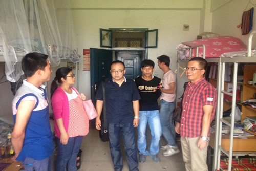 【数学计算机学院 海天/图文】为加强学生公寓安全管理,维护暑期安全稳定工作,7月9日下午3:00,数学计算机学院全体辅导员老师会同后勤集团副总经理张宁老师和B区宿管科科长夏国辉老师来到B区、C区学生宿舍了解学院学生暑期离校情况。