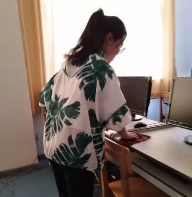 本次大扫除主要是对学院楼机房和楼梯地面的清扫。在进行了简单分组分工后,同学们便很快行动起来。在活动过程中,同学们积极认真、热情洋溢的对各个地方进行清扫,伴随着同学们的每一分付出,每一滴汗水,地面越来越干净,楼层越来越整洁。同学们用自己的实际行动为学校增添一份清新,一抹明亮,那滴滴汗水挂在她们自豪灿烂的脸上,显得如珍珠般耀眼闪亮。最后,在大家齐心协力的合作下,学院楼各个地方被打扫得一尘不染,焕然一新。看着眼前的场景,同学们深深地感受到付出的喜悦。