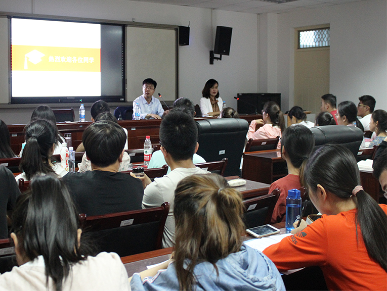2018年5月24日下午七点,英国正版365官方网站特邀兰州大学数学与统计学院副院长邓伟华教授、党委副书记许倩老师、周渊老师于学院楼413会议室进行保研考研专业介绍、前景宣讲,参加此次宣讲的主要为各年级学习优异的学生,以及有保研考研意向的学生。