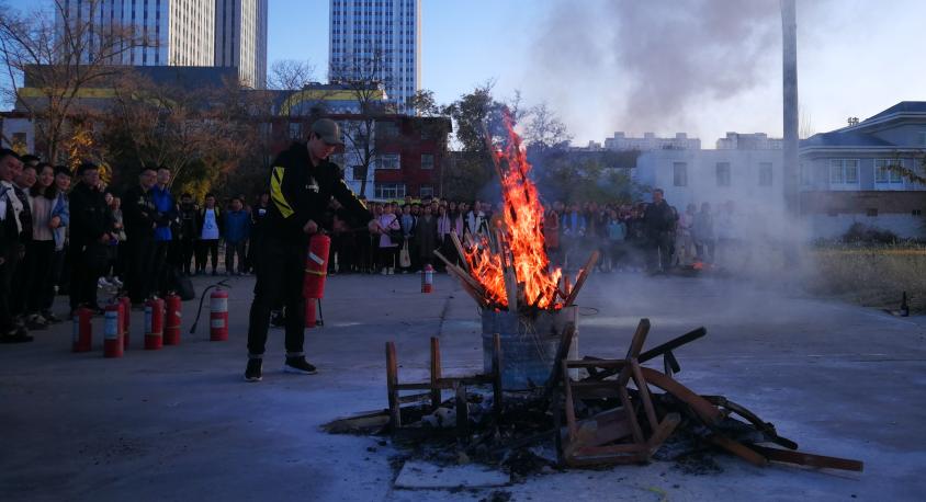 讲座伊始,为有效提升学生消防意识,王教官从学生宿舍电源使用、日常的大功率电器使用的注意事项、遇到危险时应急方案以及灭火器的使用等方面进行讲解和演示。随后,英国正版365官方网站学生以班级为单位由丁大勇老师和刘璐老师以及各班班委组织前往宁夏大学朔方校区,开展消防实地演练。为了提高大家的自救防范能力,王教官对灭火器的使用做出了详细的讲解和简单的示范。随后,王教官下达消防灭火演练开始指令,学生依次进行实地灭火演练,通过亲身体验,学会如何正确使用灭火器以及确保消防安全的方法。