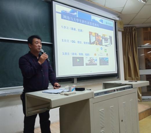 讲座伊始,丁大勇老师为同学分析了网络的利弊,讲述了几个关于网络暴力的例子,为同学们敲响了警钟。随后,丁大勇老师阐述了网络不良信息对大学生的危害:影响着大学生的人生观,价值观,世界观;影响了大学生的现实交际能力;动摇了大学生的政治信仰;弱化了大学生的道德观念。最后,丁大勇老师告诫同学们:“切记在网络上不可发布一些涉及政治方面的言语,文明上网,不做键盘侠。”大学生既是网络的使用者、传播者、受益者,也可能成为不良网络信息的受害者。