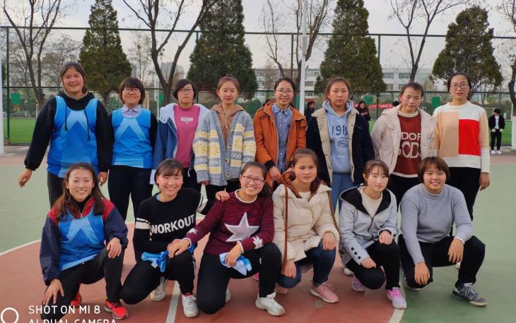 比赛开始,双方便展开了激烈角逐,比分交替上升,僵持不下,两支队伍狭路相逢,吸引了许多同学前来观战。投球动作潇洒,每个动作争锋相对,双方争夺异常激烈,比赛进行地如火如荼,双方队员都情绪高涨,啦啦队也激情四射,气势磅礴。赛场上队员们积极投入、全力以赴;场下的啦啦队为她们呐喊助威;裁判员、计分员和计时员都秉公执法,严肃认真,尽自己最大的努力判决好每一个球,保障了比赛的公平公正;各队员也服从裁判,赛出风格,赛出水平。随后,体育部成员组织拍照留念。