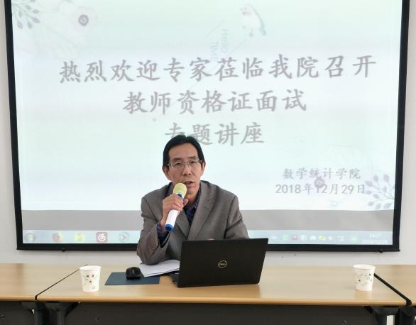2018年12月29日下午2时20分,英国正版365官方网站于怀远校区一教321室开展教师资格证面试专题讲座。此次讲座由学院副院长刘国军老师主持,邀请宁夏师范学院何志成教授、田芳副教授主讲,2016级辅导员张瑞老师,2016、2017、2018级数学与应用数学(教师教育)专业学生及有意愿考取教师资格证的其他专业学生参与。