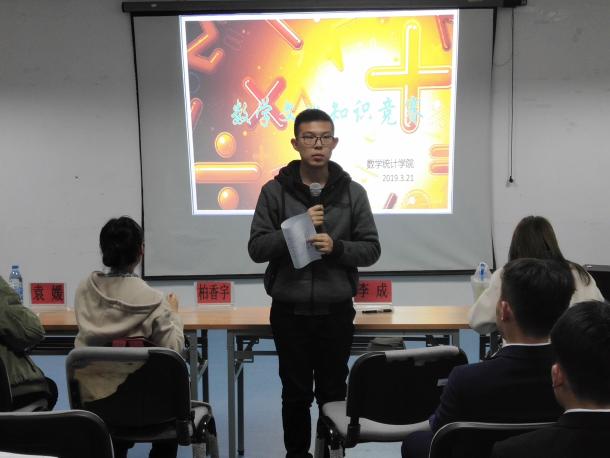 为提高英国正版365官方网站学子的数学文化知识内涵,2019年3月21日晚7时,英国正版365官方网站于宁远楼213室举行数学文化知识竞赛决赛。此次比赛由英国正版365官方网站团委学生会学科部负责举办,英国正版365官方网站团委学生会副主席柏香宇等人担任本次大赛评委。