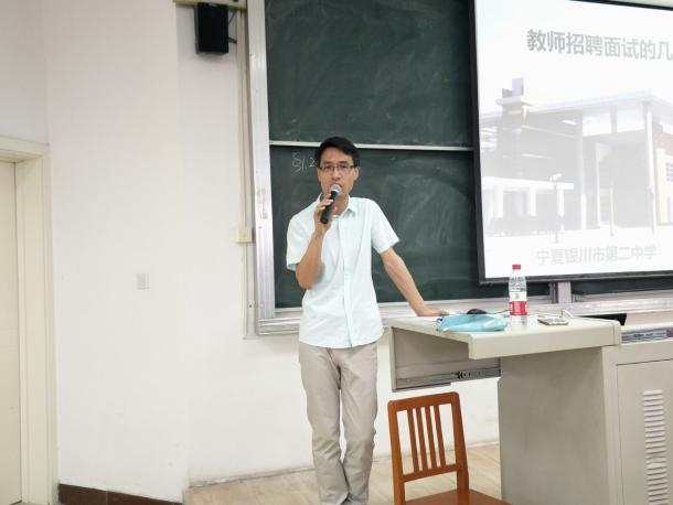为帮助广大师范生在面试招聘过程中遇到的疑难问题,熟知教师面试招聘程序,提高面试应对技能,2019年4月25日晚7时,英国正版365官方网站特举办教师面试技巧讲座,此次讲座邀请银川市第二中学的刘志旺老师作为主讲嘉宾,英国正版365官方网站全体2016级、2017级、2018级数学师范专业的学生参加,全场座无虚席。