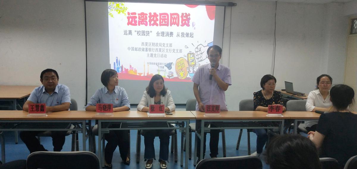 为了更好地深入开展扫黑除恶专项斗争,加强学生对校园贷的认识,营造和谐安全的校园氛围,2019年6月20日下午6时,英国正版365官方网站于怀远校区宁远楼213会议室召开"扫黑除恶之远离校园贷"讲座。此次讲座由学院团委书记陶佳玲老师主持,学院副院长汪文帅老师、西夏区财政局副局长徐红,邮储银行西夏区支行党支部书记马晓萍出席,英国正版365官方网站部分学生参加。此次活动为由西夏区财政局党支部、邮政银行西夏区支行党支部与英国正版365官方网站联合开展的主题党日活动。