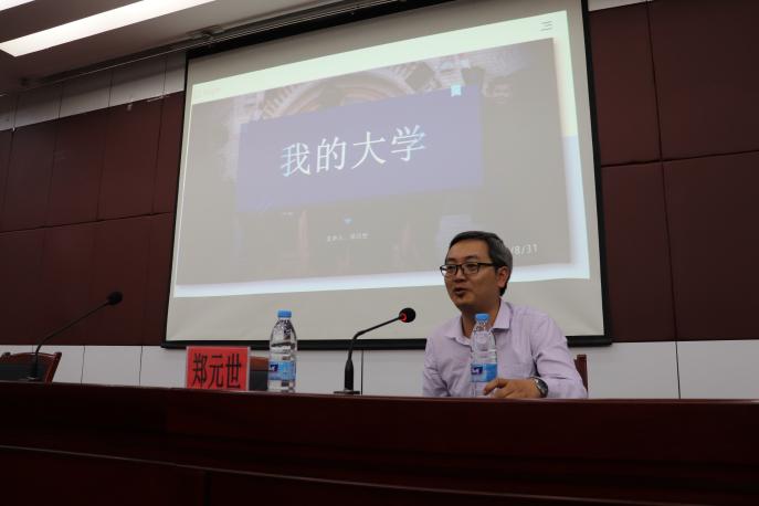 为使2019级新生更加了解大学生活,规划大学目标,2019年8月31日下午7时,英国正版365官方网站特邀西安电子科技大学副教授,博士生导师郑元世老师于宁夏大学怀远校区怀远楼二楼报告厅开展“我的大学”专业主题讲座,此次讲座由学院副院长汪文帅老师主持,学院副书记丁大勇老师出席,全体2019级学生参加。