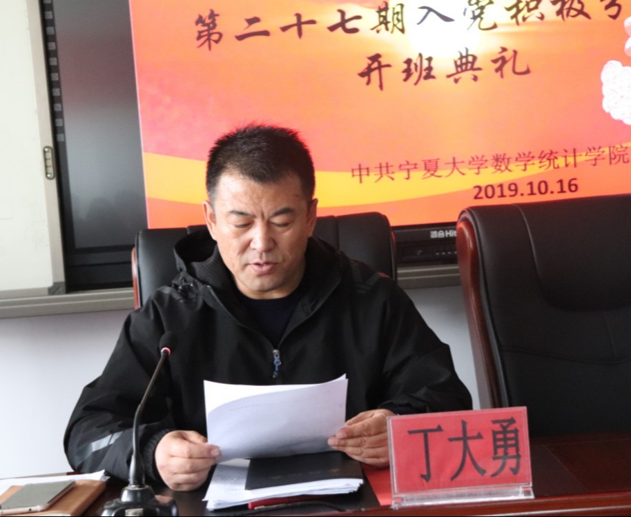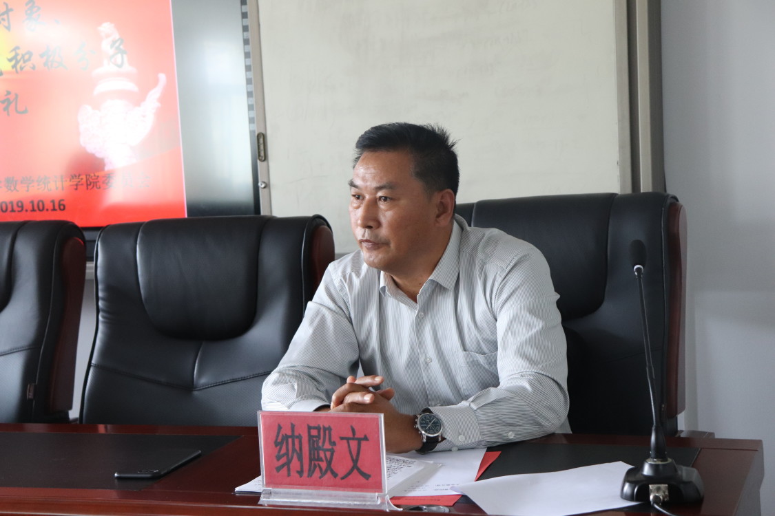 为了帮助英国正版365官方网站学生进一步掌握党的相关理论知识,提高综合素质,切实保证入党积极分子和发展党员的质量,提高党的战斗力,2019年10月16日中午12时40分,英国正版365官方网站于怀远校区宁远楼413会议室举行第十期发展对象与第二十七期入党积极分子培训班开班典礼。本次典礼由学院党委副书记纳殿文老师主持,学院党委书记刘富祥老师、学院党委副书记丁大勇老师、学院副院长刘国军老师、李风军老师、学院团委书记、学生工作办公室主任陶佳玲老师及数学综合党支部书记刘璐老师出席,全体第十期发展对象成员及第二十七期入党积极分子参加。