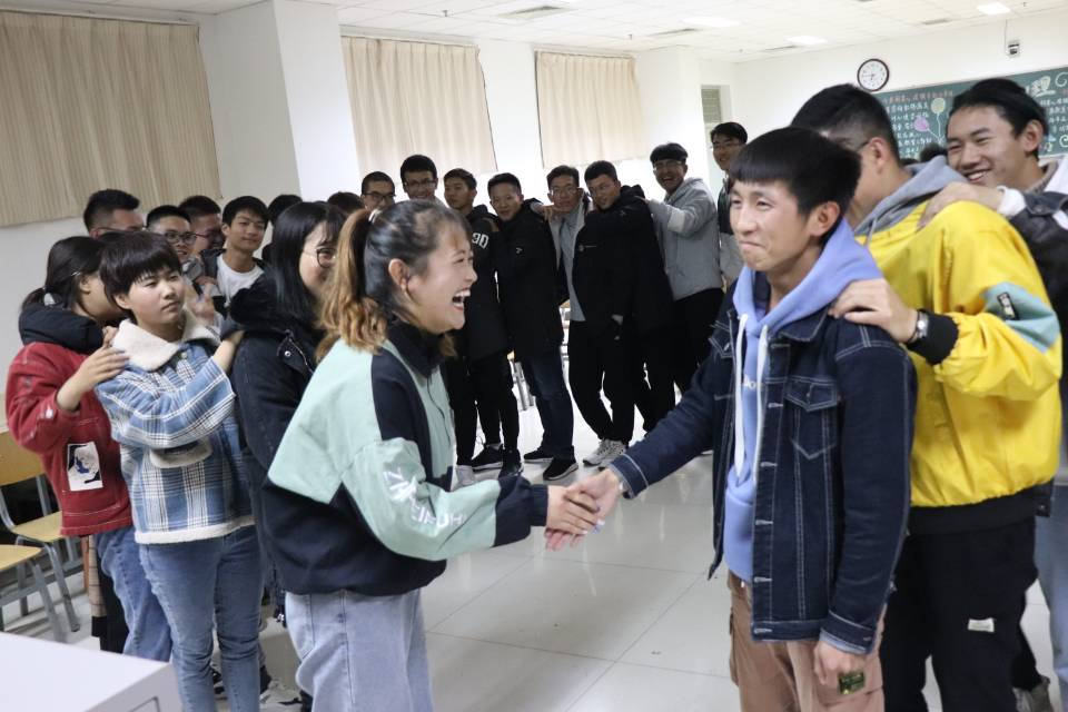 1.首先为了调动整个班级的气氛,心理辅导员跟新生们进行了“手指操”这个活动,看见旁边的“手残党”以及自己的手足无措,同学们脸上洋溢着发自内心的笑容,也为后面活动更顺利的进行做了一定的基础。
