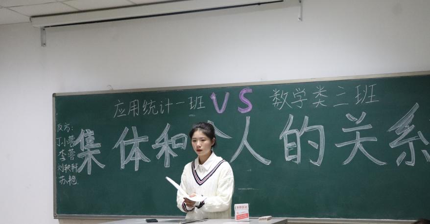 第三场比赛是由数学类3班和应用统计学1班就“个人和集体的利益”为辩题进行辩论。当正方二辩常文博同学提出问题后,反方三辩刘轶轩同学就鲁滨逊的例子进行了激烈的答辩,获得一片掌声。在最后的总结陈词,反方四辩苏艳同学指出正方的矛盾之处并旁征博引雷锋等例子表明首先要个人优秀才会造就集体伟大的观点。经过一番唇枪舌战,反方表现优异,获得胜利。
