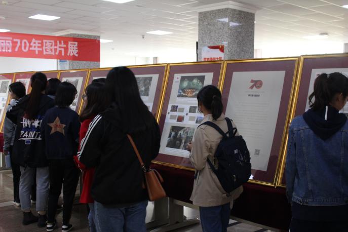 活动伊始,同学们在图书馆门前集合完毕。随后,同学们安静、有序地走进图书馆,看着陈列在一楼大厅里一幅幅历史的留影,同学们感叹祖国所发生的巨大变化。看着祖国从站起来,富起来到强起来伟大历史变化,大家都不由的自豪起来,为自己的幸福生活、祖国的繁荣富强而自豪,在这自豪之余更有一种使命感和责任感笼罩在每个人心头。