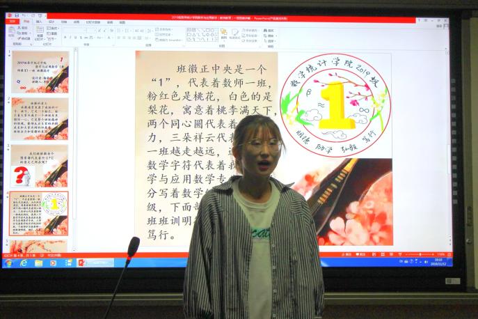 本次答辩按照班级顺序进行,各代表依次登场进行陈述,每个班级限时4~6分钟,大家从班级简介、设计理念、图案寓意、色彩搭配等多个方面出发,对班级精神进行阐述,有的简洁大方而不失内涵、有的配合音频视频准备充分、有的华美绚丽引人注目、还有的新奇有趣使得台下欢笑连连,给予评委及观众视觉的震撼和心灵的享受,使得整个答辩现场氛围有序而不失活泼,展现了设计者们丰富的想象力,也让大家对于各班班级理念有了全新认识。