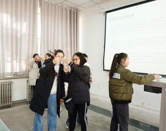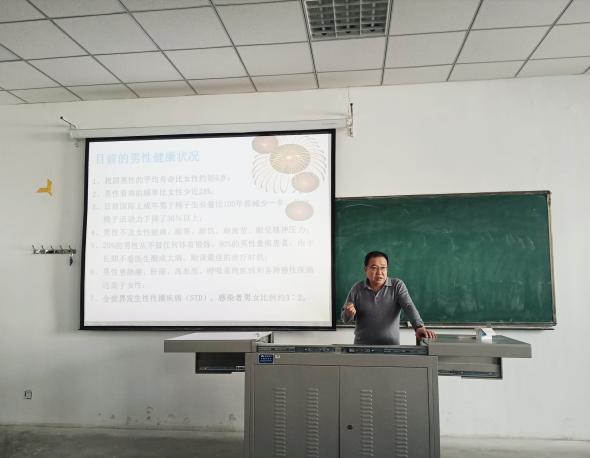 随着同学们的入座,讲座拉开序幕。讲座伊始,张久存医在十个杯子里倒入了不同的液体并将它们混合在一起,通过各溶液的混合现象,张医生向同学们阐述了个人生活用品不共用的重要性。随后,路艺医生为大家简单介绍了普遍男大学生的健康状态并希望同学们能够注意日常饮食、多锻炼,拥有一个健康的身体。接着,两位医生分别就艾滋病病毒的特点、传播途径及、如何预防做出讲解并展示了有关艾滋病病人特征的图片,老师们讲道:之所以乌干达国家死亡人数逐年增长,经济也不发达,是因为他们不注意卫生,且患有艾滋病的人数众多。最后,两位医生通过介绍HPV病毒的症状和感染途径,告诫同学们注意日常卫生,保护自身健康。