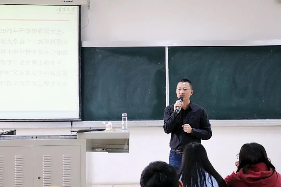 之后,丁生虎教授以自身成长与出国访学的经历为例,鼓励在场所有同学能做到:听师良言,攻读博士;克服困难,抓住机遇;团队协作,共谋发展。他说:“成功只是因为状态没断,把它延续下去就能成功。”通过丁教授的演讲,相信同学们得到了不少心得经验,对数学也有了更多的了解,大家用热烈的掌声表达了对丁老师精心准备的报告的感激之情。
