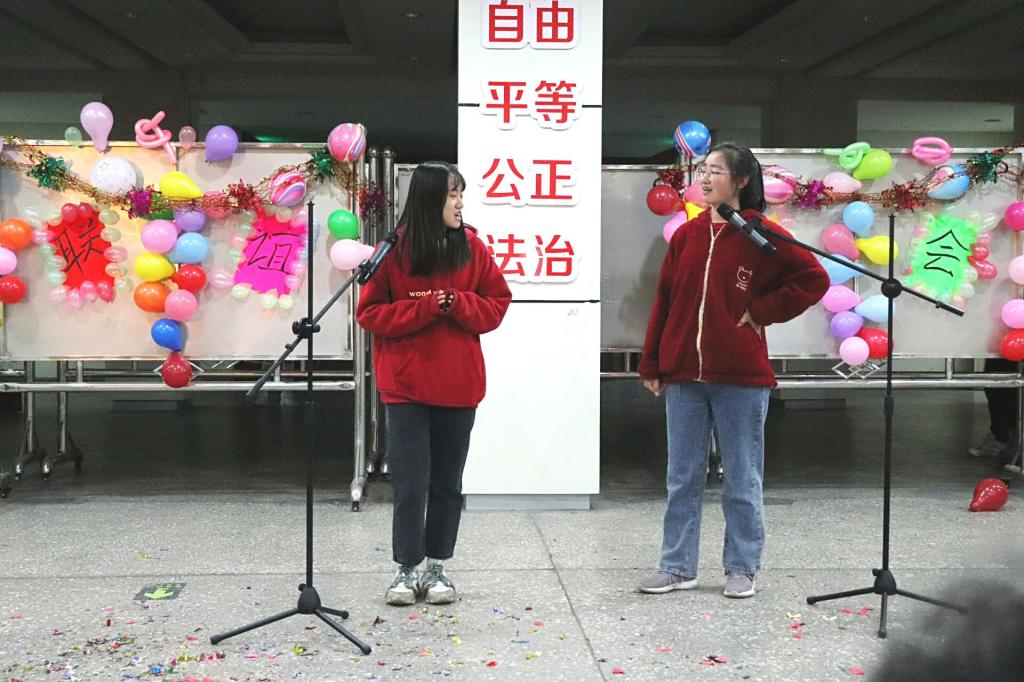 在主持人的登场以及同学们的热烈掌声中,联谊晚会拉开了帷幕。晚会伊始,首先由郑轶老师致辞,郑轶老师幽默诙谐的话语让晚会现场欢笑不断,他表示:“有一种相逢叫相见恨晚,有一种相聚叫缘分很满 。我们数统学子聚是一团火,散是满天的雪花”,郑轶老师的话让这个寒冬显得愈加温暖。