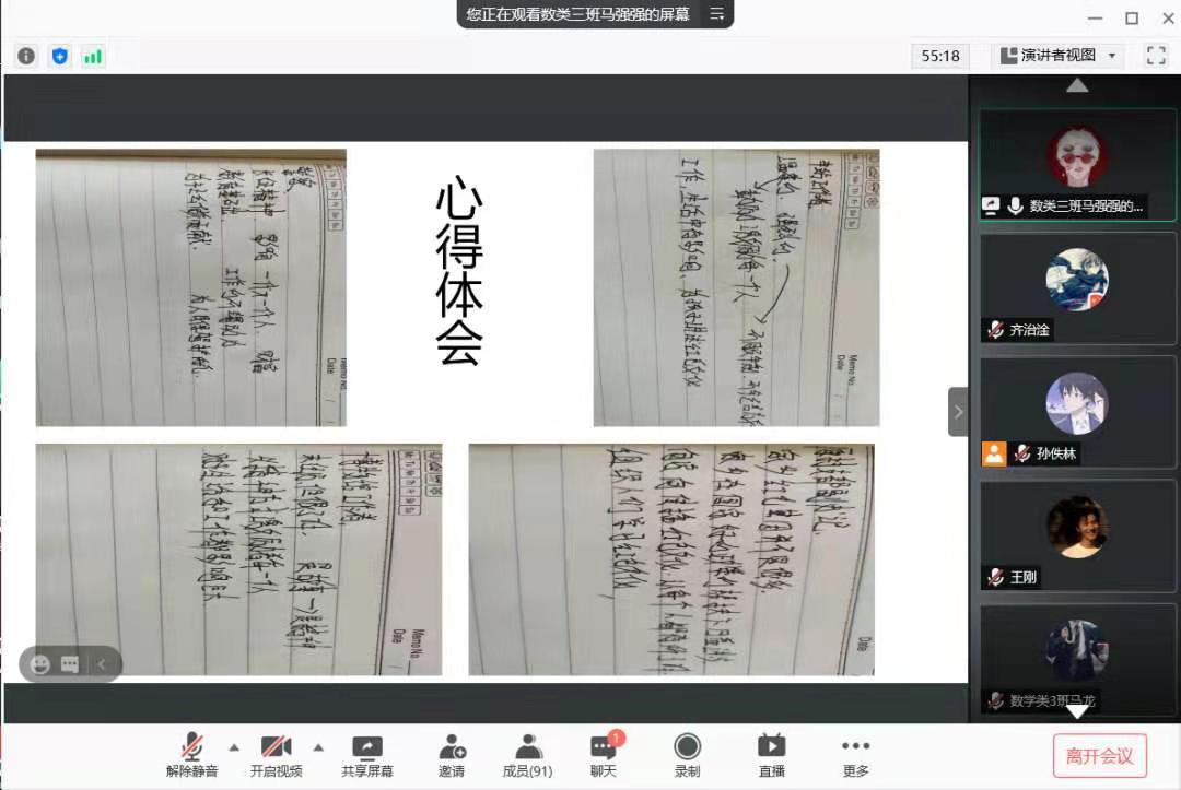 会议过程中同学们聆听革命事迹,感受先辈们留下来的精神力量,为继续前进而积蓄力量!同学们在项目报告中互相分享,收获满满。