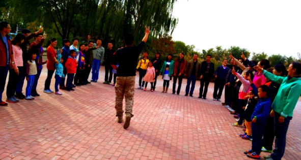 教师们在教官的指导下,了解了素质拓展的意义和目的,进行了破冰热身活动,并进行分组。教师们集思广益,献计献策,为自己的队伍起了队名、制作了队伍的Logo,制定了口号和队歌,并进行了现场竞演。随后又举行了团结的兔子、激情飞渡、分组野炊、篝火之夜等科目的训练,并颁发了各类比赛奖品。