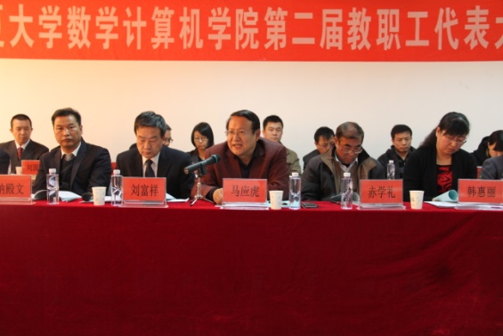 2015年1月10日下午14时,数学计算机学院第二届教职工代表大会在宁夏大学B区数学楼会议室召开,学院40名正式代表,7名列席代表及3名特邀代表参加了本次教代会。体育学院、民族预科学院、化学化工学院等兄弟学院分别发来了祝贺信函。学院分党委书记刘富祥同志和分工会主席田耕同志主持会议。