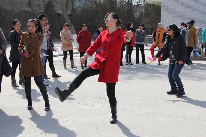 2014年3月12日下午,数学计算机学院分工会举办了庆祝“三八”妇女节女教工踢毽子比赛,比赛在B区数学楼东停车场进行。来自数学计算机学院的69位女教工按年龄段分成三个小组,进行了1分钟踢毽子计数赛,每位选手有两次机会,取成绩最好的一次为有效成绩。