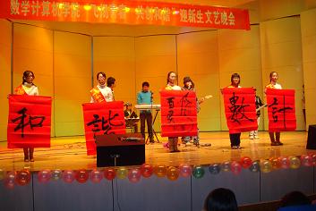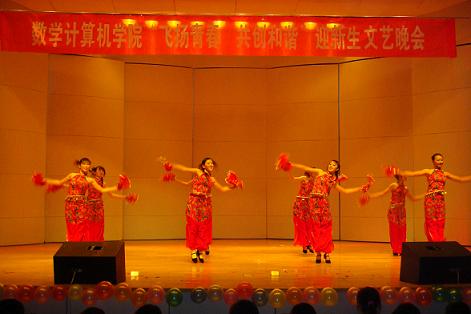 11月9日数学计算机学院在A区音乐厅举行题为“飞扬青春,共创和谐”的迎新生文艺晚会。