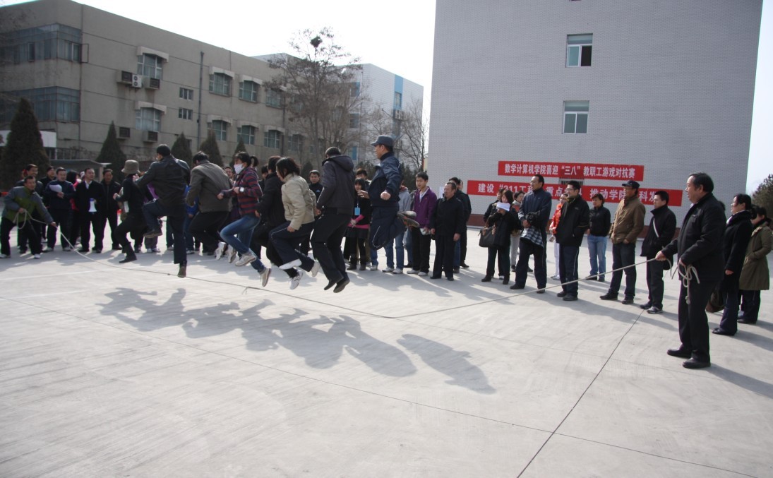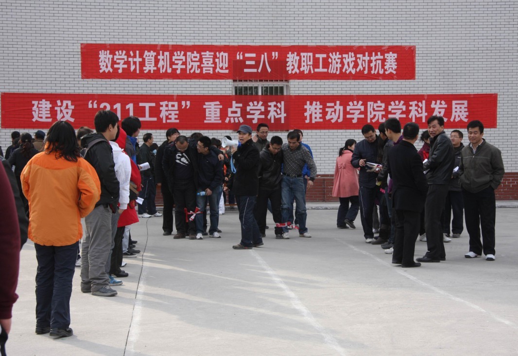 【数学计算机学院姜帆:供稿】为了丰富英国正版365官方网站教职工的文化生活,加强英国正版365官方网站教职工彼此的交流与沟通,增强各学科教职工间的凝聚力,在学院领导的倡议与广大教职工的积极参与下,3月7日下午,数学计算机学院工会在数学楼前广场隆重举行喜迎三八春季教职工游戏对抗赛。
