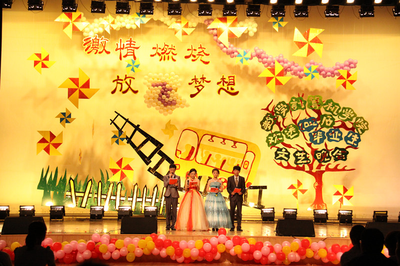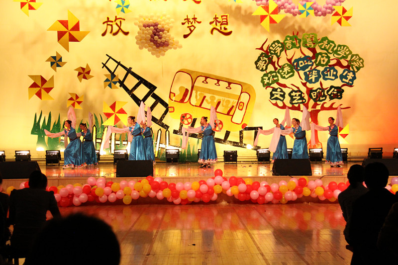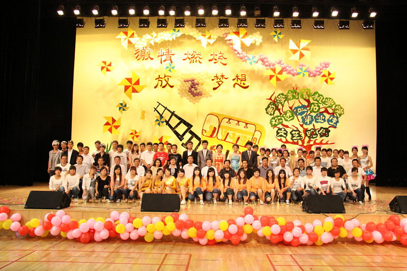 以“激情燃烧·放飞梦想”为主题的文艺演出在激烈的乐队表演中拉开序幕。晚会舞台布置新颖别致、流畅大方,背景设计寓意深刻、独具匠心,更加增添了留恋、感恩、祝福的浓浓气氛。演出中,热烈奔放的拉丁舞、爵士舞《perhaps》充分演绎出了青春的气息和韵律。舞蹈《Dr feel good》、《哈尼》和《Hey girl》给人以美的感受,异彩连连。诗朗诵《祝你一路顺风》表达了对毕业生的眷恋和祝福之情。歌曲《旅行》、《暖暖》、《此生不换》、《穿越人海》意境优美、婉转动听。音乐学院奉送的二重唱《因为爱情》和藏族舞《高原的格桑》引起了现场的声声喝彩,将晚会推向了高潮。晚会在现代舞《marry the night》的欢快节奏中缓缓落下了帷幕。