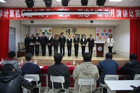 比赛开始前,首先主持人介绍了本次比赛的要求、规则及活动的目的,比赛本着公平、公正、公开的原则,分别从演讲内容、语言表达、形象风度、综合印象四个方面进行考核,比赛采取现场计分、亮分的做法。11位选手仪态大方、声情并茂地以《读书伴我行》、《品味书香舞动青春》、《乘着书的翅膀飞翔》等主题在规定时间内对自己的作品做了精彩诠释,赢得阵阵掌声。选手们的演讲,使大家发现了不曾发掘的蜿蜒曼妙的书海城堡,发现自己需要静下心来从书中领悟过去,体验现在,感知未来。在选手们强有力的例证、热情的表达中,同学们犹如翻开一页页篇章,吸取其中宝贵养份。
