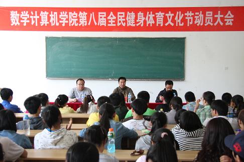 5月3日下午,数学计算机学院在B区综合楼105教室隆重召开了学院第八届全民健康体育文化动员大会。学院党总支副书记乔晓军,学生工作办公室主任黄锐诚,院团委书记马生忠出席了会议,学院全体团委学生会干部和参加本届运动会的全体运动员参加了会议,会议由黄锐诚老师主持。