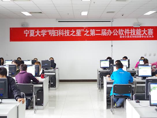 数学计算机学院乔楠】为提升学生办公软件运用能力,丰富学生的课余生活,进一步推进我校的学风建设,活跃校园文化,5月8日下午,由宁夏大学团委主办,数学计算机学院承办的宁夏大学第二届“明日科技之星”办公软件技能大赛在C区L楼中心机房如期举行。数学计算机学院党总支副书记乔晓军老师、学生工作办公室主任黄锐诚老师亲临现场观看了比赛。