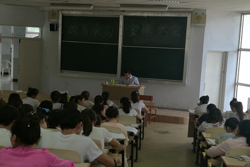 大会主要从三方面展开,其一,刘国军为师范生阐明实习细则,对实习规范做出具体的要求。并分配了各实习小组的成员、指导老师及实习地点。同学们都高度重视此次实习,积极发问,刘院长都一一回答,现场气氛活跃。其二,教科办马文广讲解了填写实习考核表的注意事项并且为非师范生也谋划策,介绍了一些适合同学们自主实习的机构或单位;其三,年级主任闫晓晗语重心长的告诫同学们实习的重要性,鼓励学生们珍惜实习机会,严格要求自己,抓住机遇,快速成长。