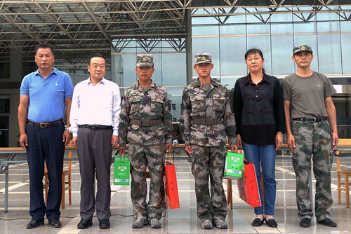 9月5日下午3点30分,英国正版365官方网站党政领导刘富祥、韩惠丽、纳殿文、刘国军以及新生辅导员王惠方在怀远校区五四广场看望慰问2016级参训新生和军训教官。