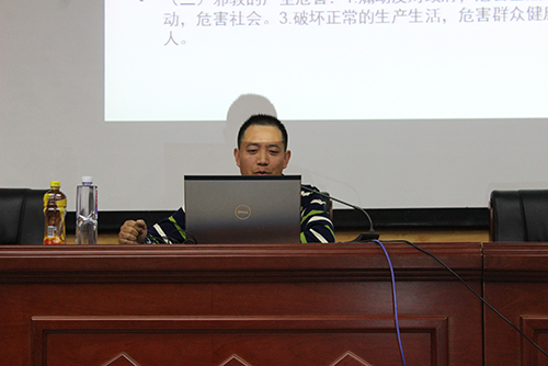 讲座由保卫处丁维凡老师主讲。丁维凡首先与同学对于“什么是安全”进行互动并对同学的回答做了详细的补充。丁维凡老师认为安全共分为十种,包括何为安全、国家安全、文化安全、消防安全、公共安全、人身安全、财产安全、交通安全、就业安全以及心理健康安全等。丁维凡老师着重强调消防安全。当代大学生应增强消防安全意识,掌握基本的防火,灭火以及自救逃生能力。要协助学校做好防火工作,确保安全无事故。他还用风趣的语言通过鲜活的实例帮助学生更好的理解。最后丁维凡总结出安全预防的十个重点并告诫同学处事一定要谨慎,三思而后行。