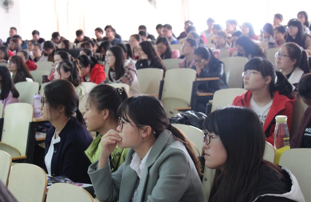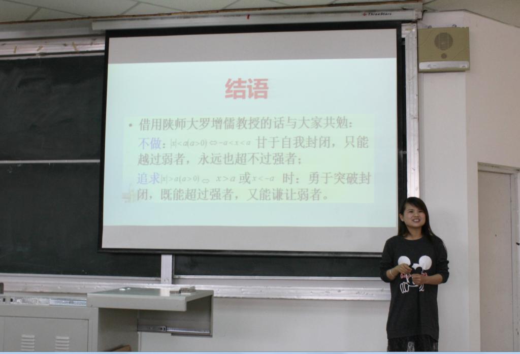 会议开始,2013级数学与应用数学(师范)学生代表雍莉、蒋茜、杨凤仙、田彦亮同学依次作实习总结。他们从自己的实习经历,实习问题和实习感悟出发,向同学们交流分享自己在实习工作任务中的经验、成果与问题,强调“实践出真知”,不断在实践中提高教育教学技能。