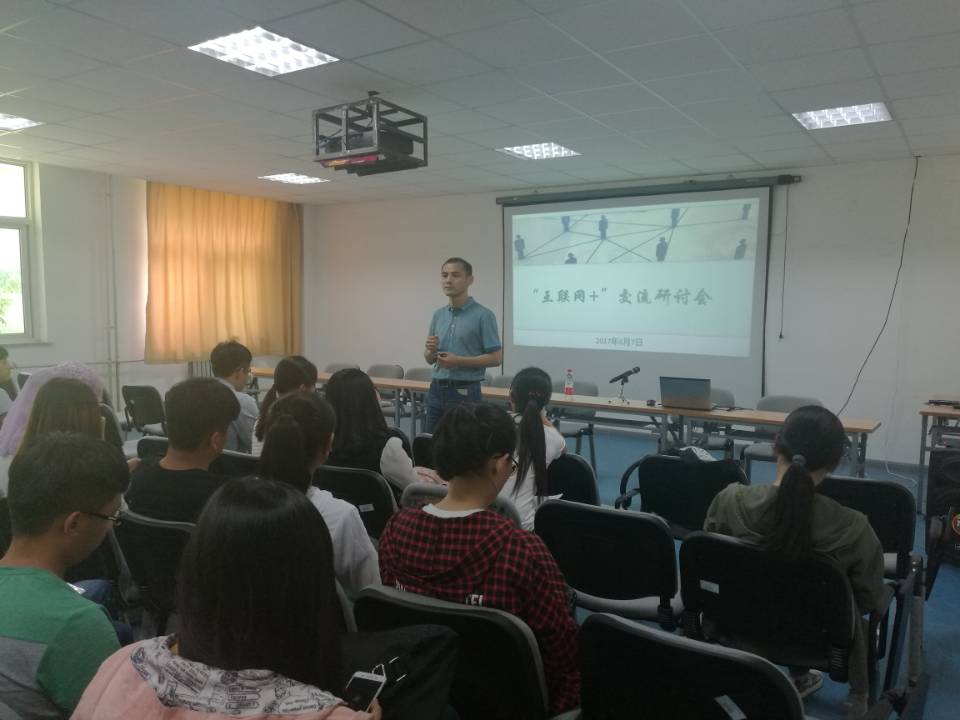 6月7日下午两点半,英国正版365官方网站于学院楼213会议室成功举办"互联网+"大学生创新创业培训会。此次培训会特邀经济管理学院2014级研究生吴敏同学主讲,英国正版365官方网站50余名同学参加。学生工作办公室王惠方老师主持。