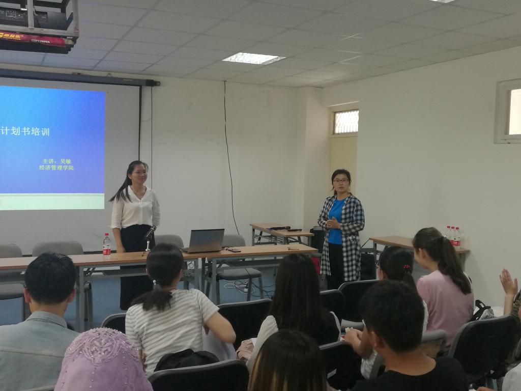 此次培训会主要针对学院报名参赛的学生,并配合对学生进行大学生创新创业大赛的指导。培训过程中,吴敏同学对创业计划书的撰写进行了系统化的讲解,使在座的同学在了解相关创业知识的同时认识到,大学生创业并不是一件简单容易的事情,它需要专业的基础知识,良好的团队,各方面细致入微的准备,以及准确的判断能力和预测能力。随后,吴敏同学向同学们展示了自己所属团队的项目计划书,作为模板具体分析。会后,吴敏同学和同学们进行交流互动,耐心解答问题。