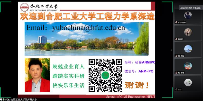 作为学院研究研究生培养的一个品牌活动,已连续举办三届。此次采用腾讯会议授课,以系列报告的形式开展,共邀请报告嘉宾8人,分别是香港浸会大学林学磊博士,同济大学航天与力学学院田小娟博士,西北工业大学航天学院副教授、硕士生导师张栋,西安电子科技大学赵琦博士,合肥工业大学副教授、硕士研究生导师余波,中国石油工程建设有限公司北京设计分公司管道室主任高级工程师尤雪梅,华南理工大学副教授、硕士研究生导师宏波,陕西师范大学吴波博士。被邀请的校友在各自的岗位做出了卓越的成绩,如林学磊博士曾在清华大学举办的“第八届世界华人数学家大会”获2019年“新世界数学奖”优秀硕士论文银奖(金奖空缺),张栋老师主持国家自然科学基金、国防基础预研、航天科技联合基金等20多项科研项目,尤雪梅主任带领管道团队完成10个海外油田项目,余波老师在边界元和反问题方面发表多篇Top期刊论文,宏波老师在海洋动力学方面主持参与项目10余项。此次系列报告的学员主要为宁夏数学学科研究生、青年教师,以及部分本科生共计150余人。