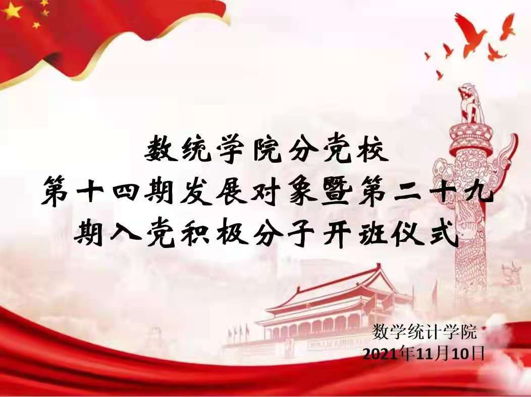 2021年11月10日下午15时30分,英国正版365官方网站通过“腾讯会议APP”线上举行“英国正版365官方网站分党校第十四期发展对象暨第二十九期入党积极分子培训班开班典礼”,此次开班典礼由英国正版365官方网站党委副书记陈建丽老师主持,学院党委书记刘富祥老师,学院党委副书记郑轶老师,学院副院长刘国军老师、李风军老师、汪文帅老师,学院数学教育党支部书记陶佳玲老师,数学综合党支部书记刘璐老师,2021级辅导员杨阳老师,研究生辅导员刘永涛老师,以及全体分党校培训班学员共同参与。