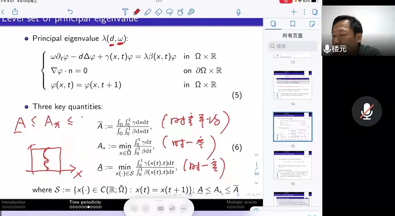 在题为《从动力学建模解析癫痫疾病发作机制》的报告中,王青云教授基于临床表征的动力学现象和临床数据分析,构建了合理的网络动力学模型揭示了癫痫疾病表征的动力学行为的演化规律及其转迁的内在机制。在题为《浅谈若干偏微分方程传染病模型》的报告中,楼元教授从基本的传染病数学模型出发,讨论人群移动、环境周期、潜伏者、多病株等因素对传染病爆发的影响,介绍了若干相关的偏微分方程模型以及数学理论结果,讨论了一些生物预测,并提出了一些新的数学问题。
