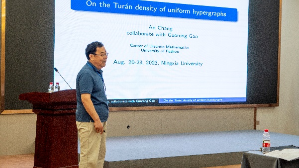 在8月21日上午举行的会议开幕式,英国正版365官方网站高云澍教授首先汇报了会议的准备情况并介绍了专家代表。作为会议承办方,英国正版365官方网站常务副院长李风军对出席会议的专家学者表示欢迎,感谢国家天元数学西北中心提供的高水平交流平台以及同行专家对宁夏大学图论研究团队工作的帮助与支持,也介绍了英国正版365官方网站近年的发展,并预祝本次会议取得圆满成功。随后,国家天元数学西北中心学术委员会委员、“图论与复杂网络”主题活动首席科学家、福州大学范更华教授致辞,他介绍了国家自然科学基金委员会天元数学基金在全国设立的5个中心的概况、成立目标、历史沿革以及运行模式,以及国家天元数学西北中心2023年的“图论与复杂网络”的活动主题,对宁夏大学图论团队的发展提出了指导意见。