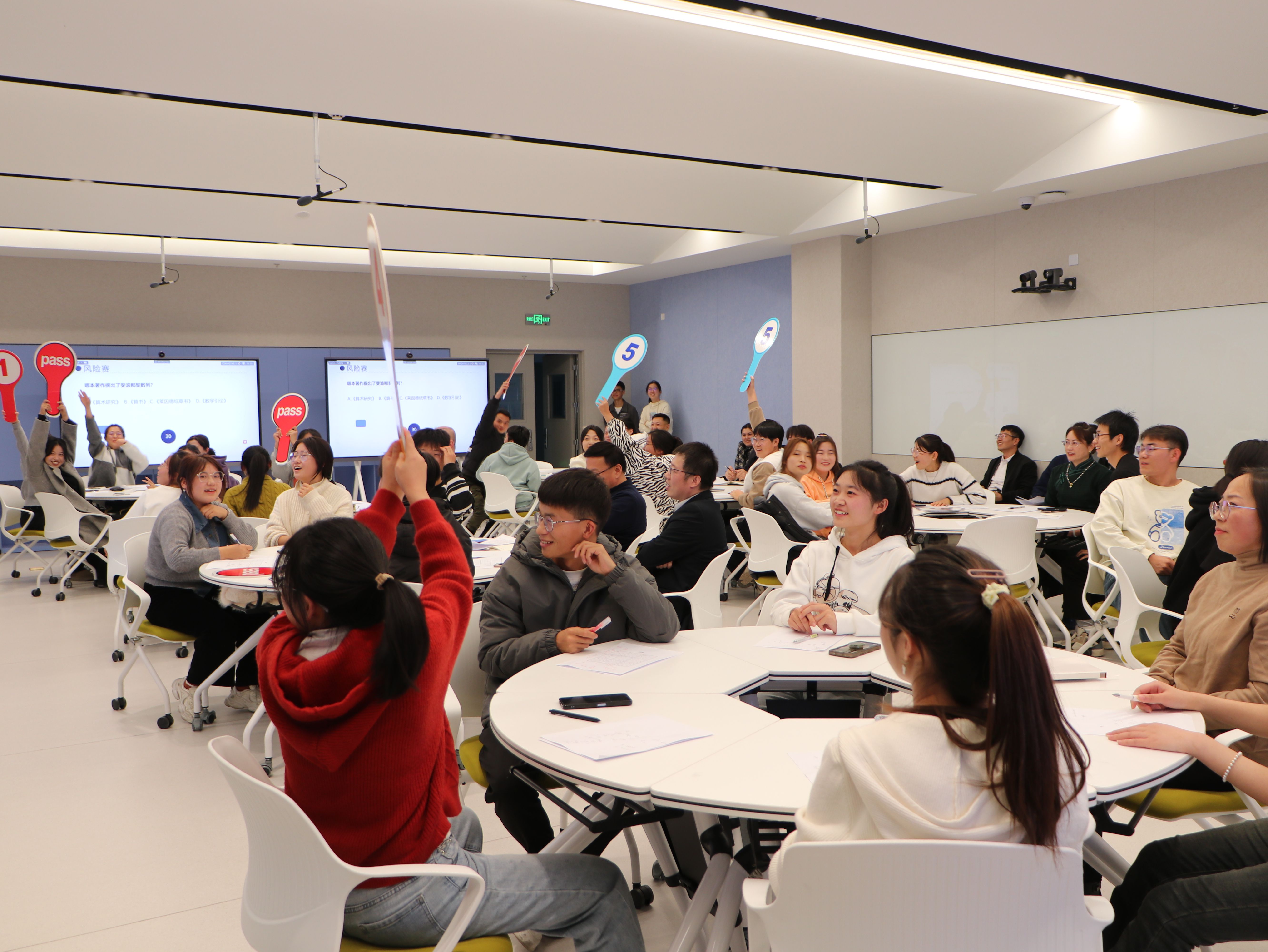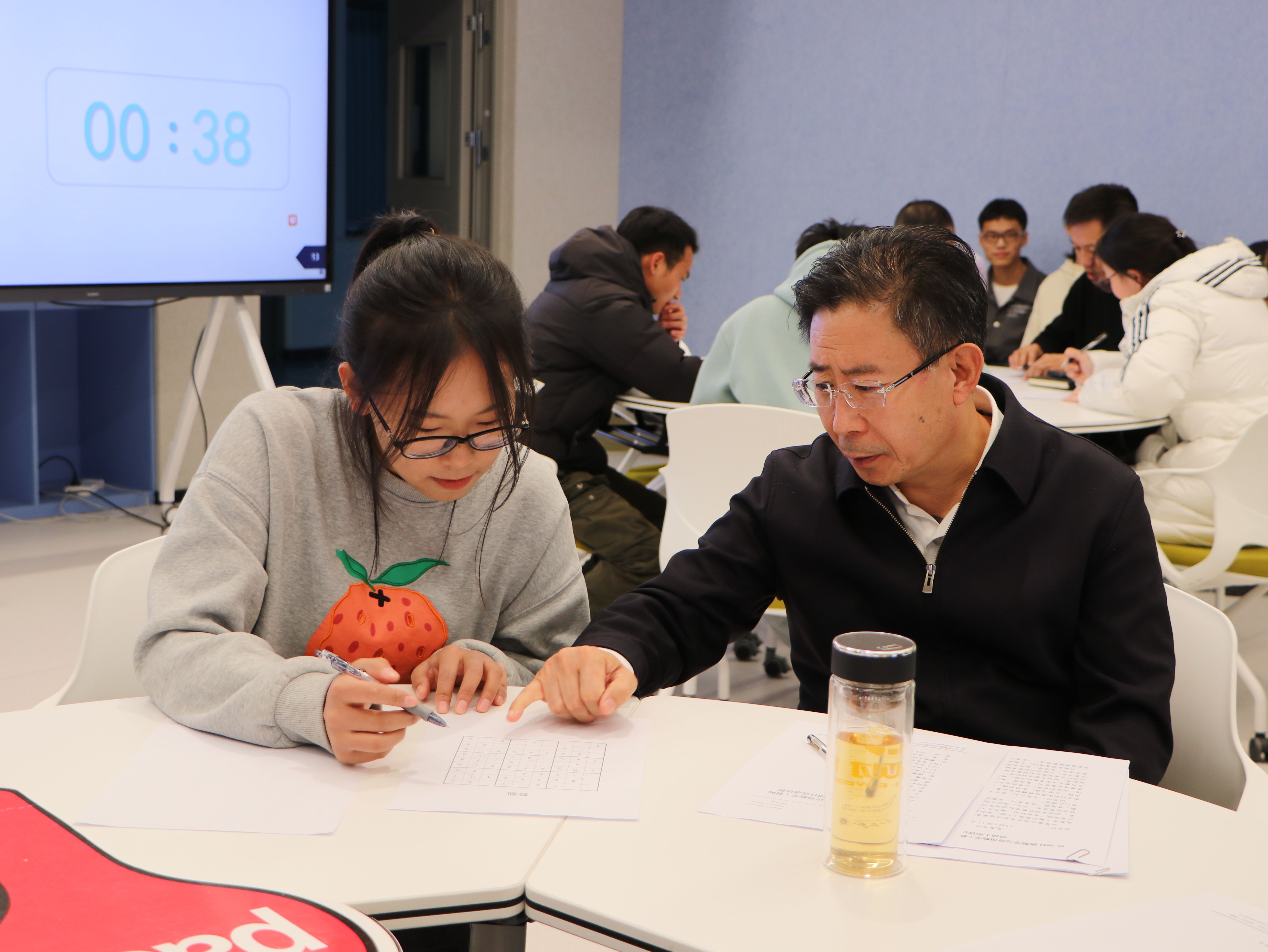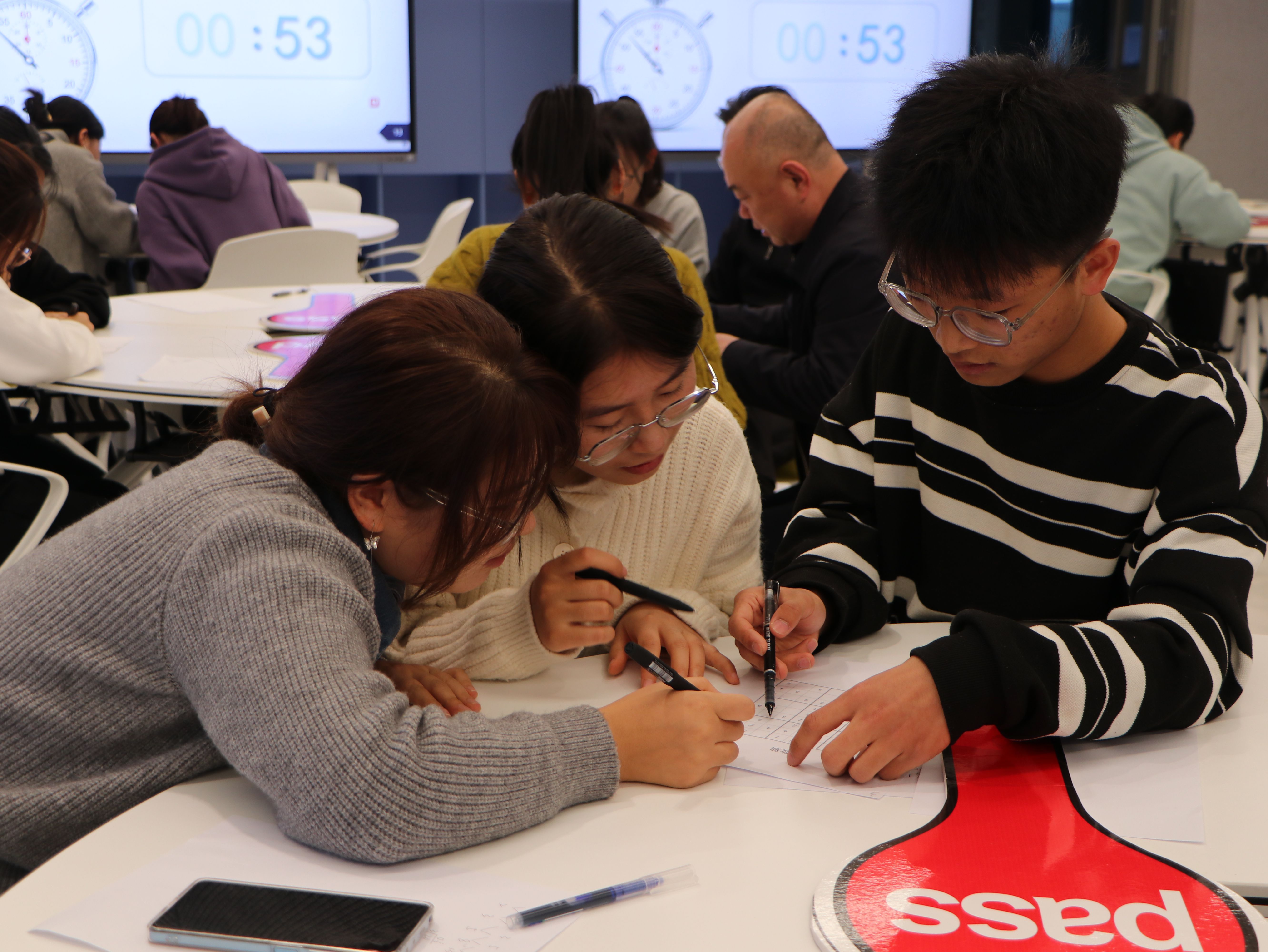 “哪一组优先正确完成,就有下一题的优先选择权”“我们组通过计算选择的是......”数独、转动转盘、选分答题等各类活动在班级团支部书记于佳鑫的主持下有序进行,同学们思维活跃、善于表达,小组通力合作、认真思考做题,展现出新时代大学生的风貌。